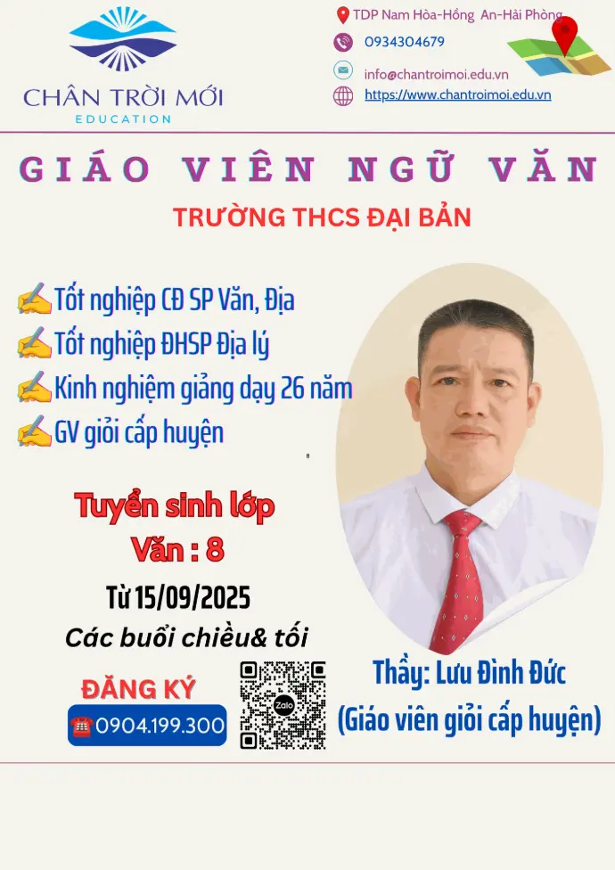 Chân Trời mới-Education trân trọng chào mừng hai thầy cô cùng là giáo viên môn ngữ Văn của 2 trường THCS Đại Bản và THCS An Hưng tham gia hợp tác giảng dạy.