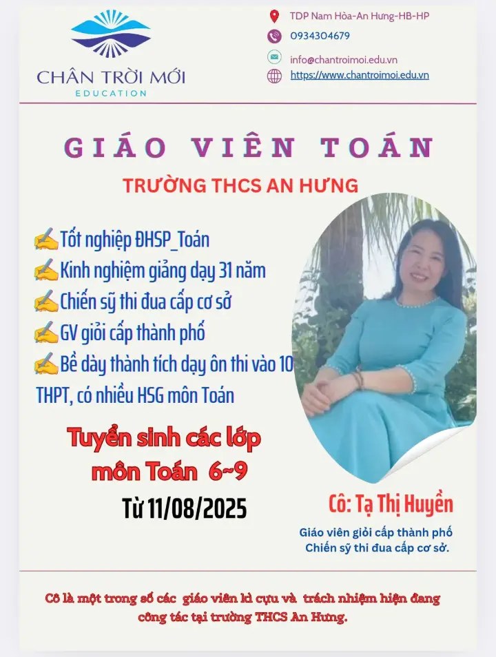 Các phụ huynh và các em học sinh có nhu cầu hãy đăng ký ngay để được tham gia lớp học do cô Huyền giảng dạy và chinh phục đỉnh cao môn Toán.